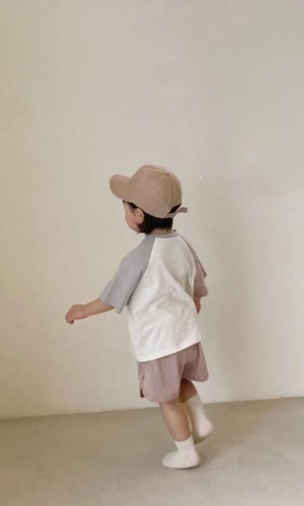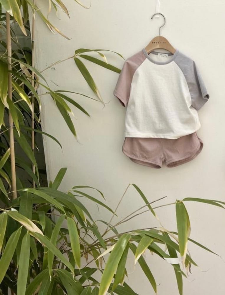يتكوّن الطقم من تيشيرت بأكمام قصيرة بتصميم كاجوال مع ألوان ناعمة متناسقة (أبيض، وردي، رمادي)، وشورت بلون وردي هادئ، مثالي لأيام الصيف الحارة.